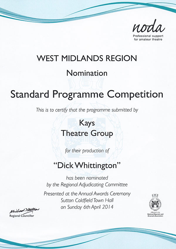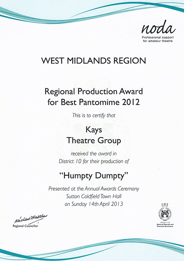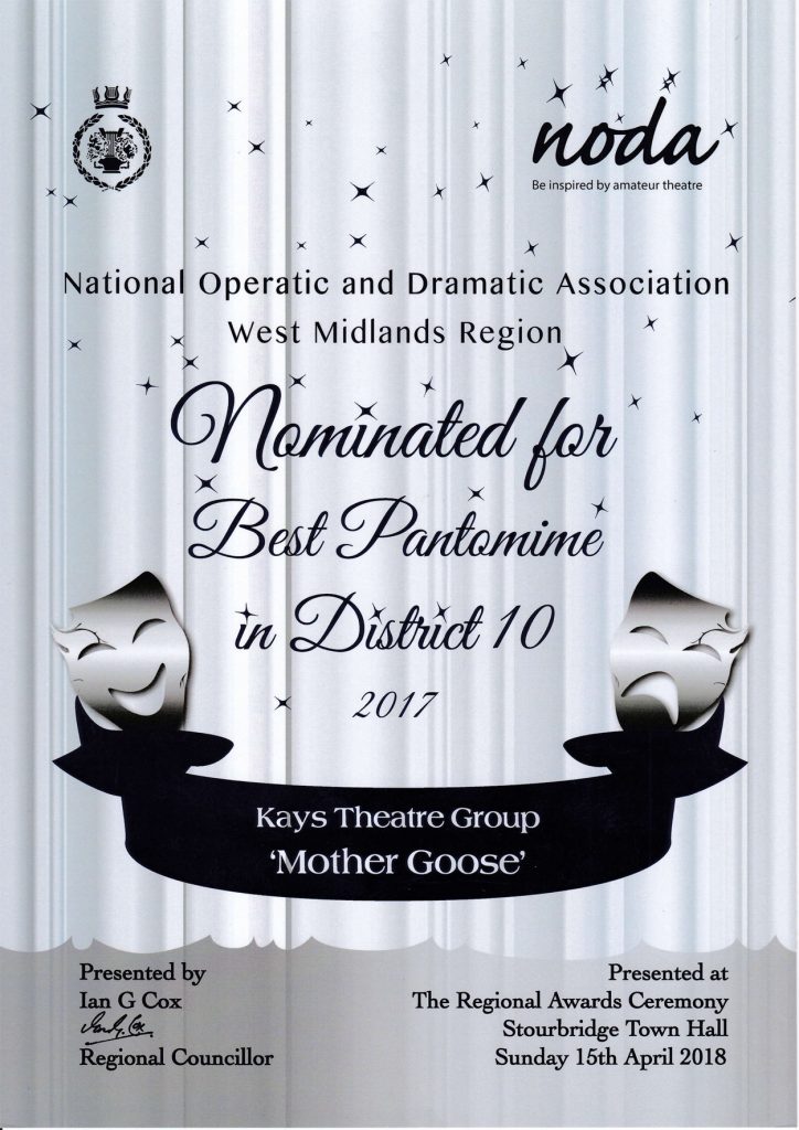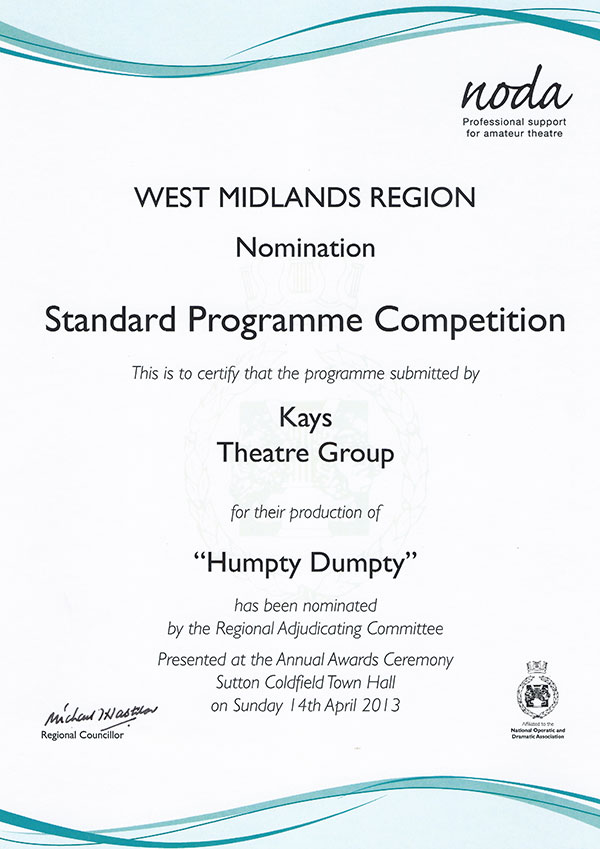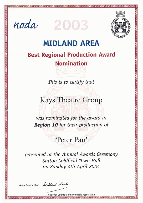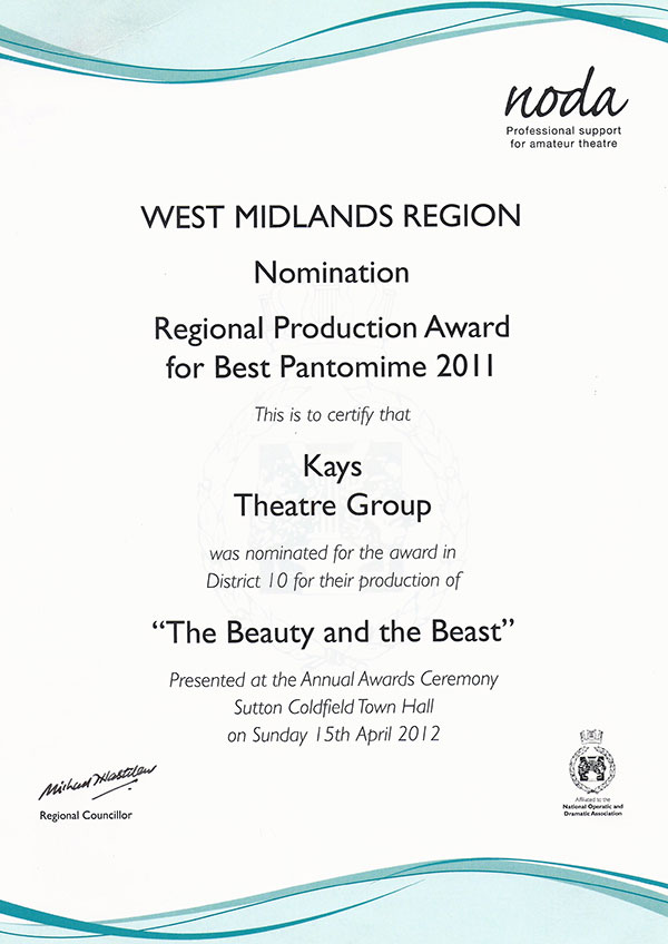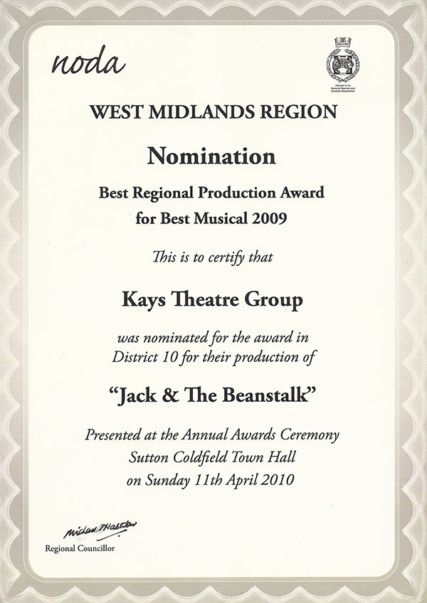 BEST REGIONAL PRODUCTION AWARD NOMINATION